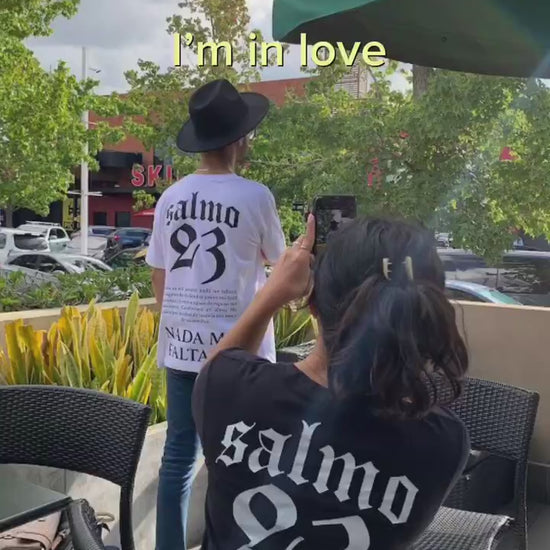 La playera Salmo 23 está hecha de suave y duradero algodón con detalles impresionantes y una impresión de alta calidad que no se desgasta. Lávala a mano para mantenerla como nueva por más tiempo. ¡Disponible en tallas guatemaltecas para un ajuste perfecto y cómodo!